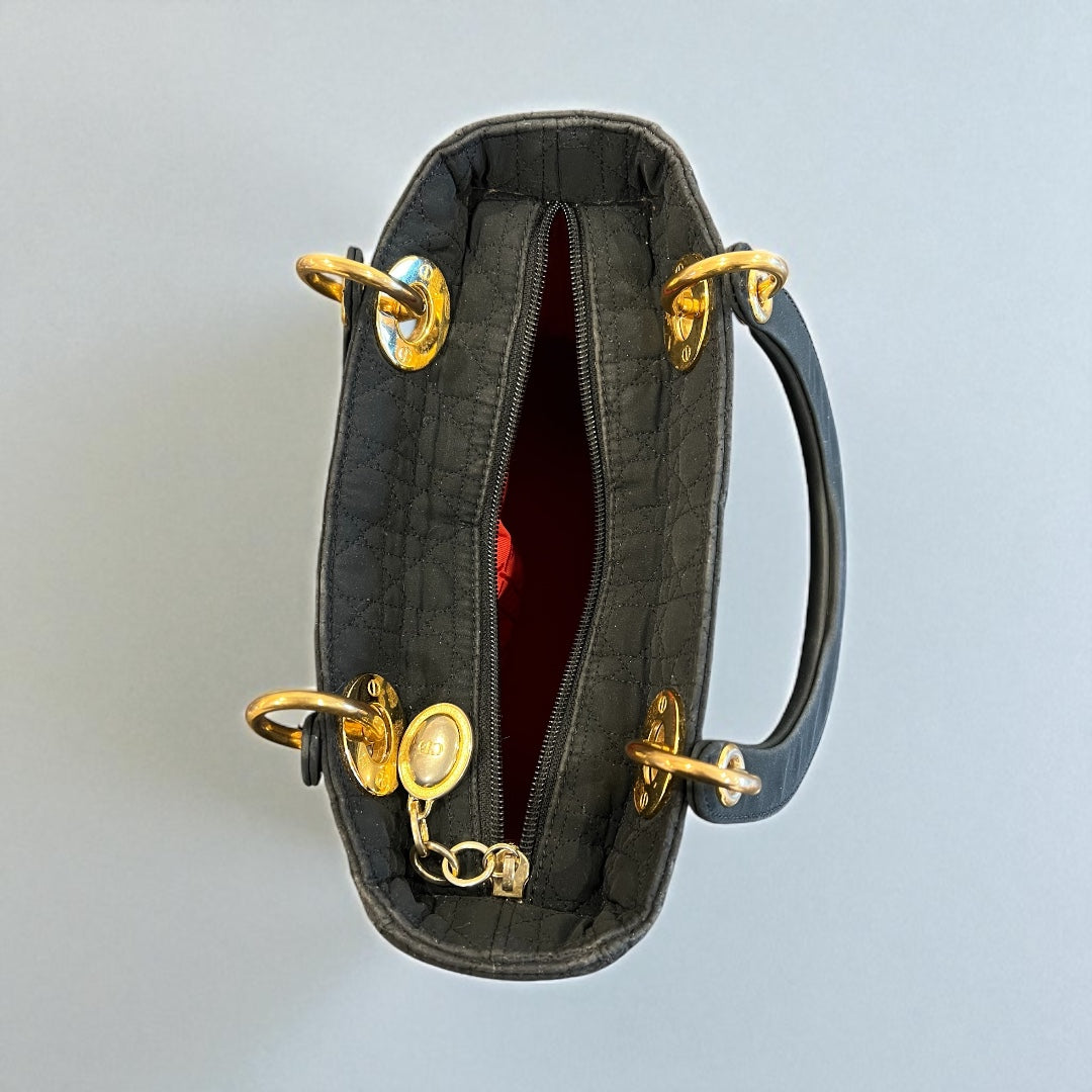 Christian Dior Lady Dior Bag – Black Cannage Quilted Nylon with Gold Hardware