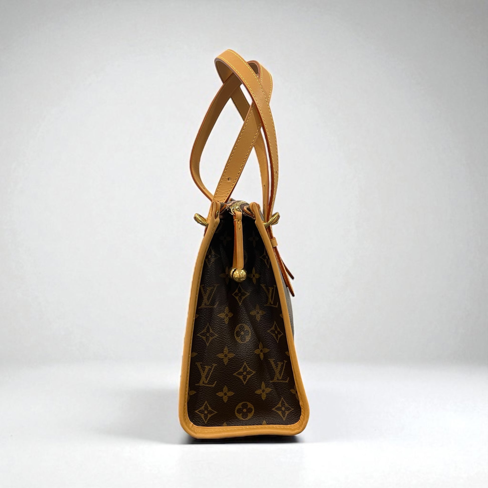 This vintage example is made from the maison’s classic Monogram coated canvas, trimmed with natural vachetta leather and finished with golden brass hardware. Distinctive LV-engraved ball details secure the adjustable side drawstrings, while dual flat handles offer both hand and shoulder carry. Its open, structured form makes it a timeless piece that transitions seamlessly from business to casual wear.