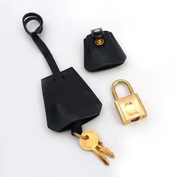 Accessories: Includes original Prada padlock, two keys, and leather clochette - rare for vintage finds.